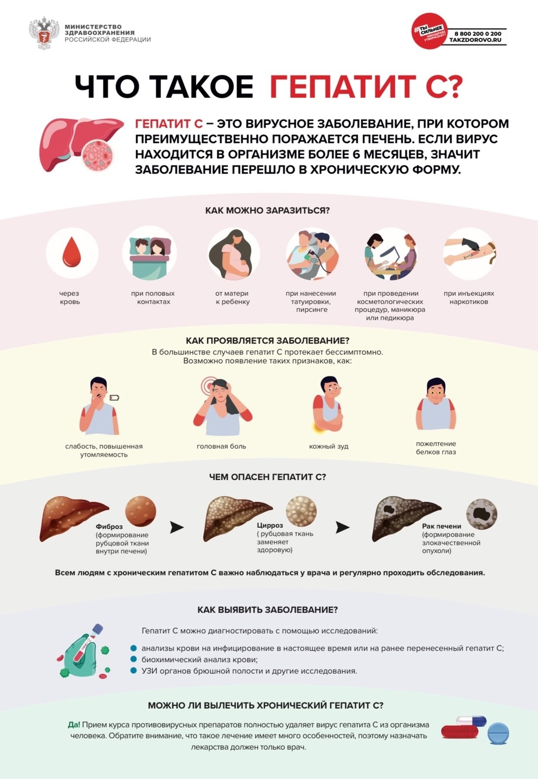 ВАЖНО! Уже многие годы гепатит С — излечимое заболевание. Противовирусные препараты позволяют полностью удалять вирус из организма человека более чем в 95% случаев!